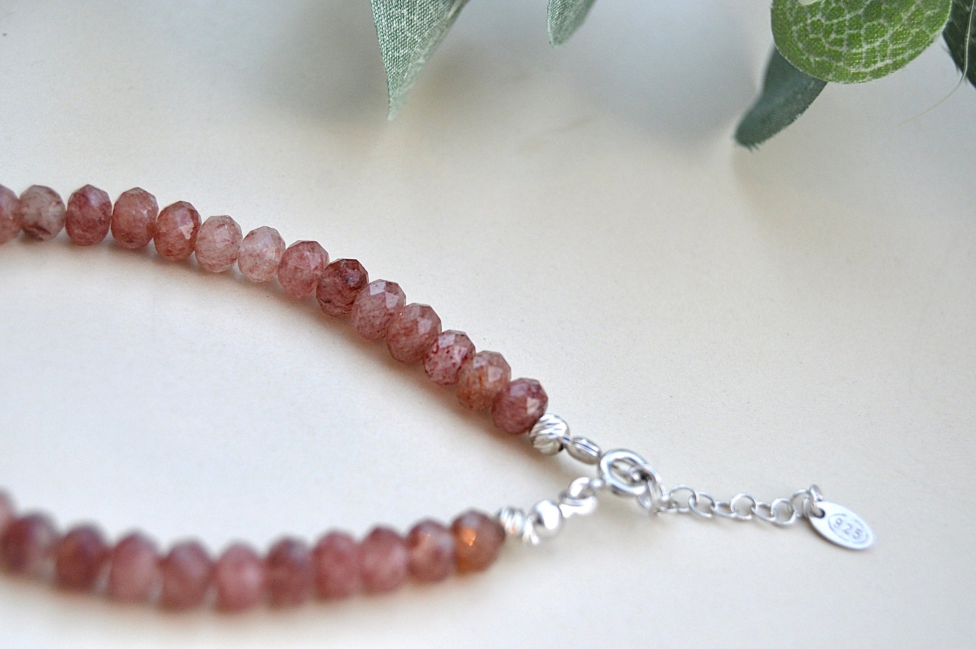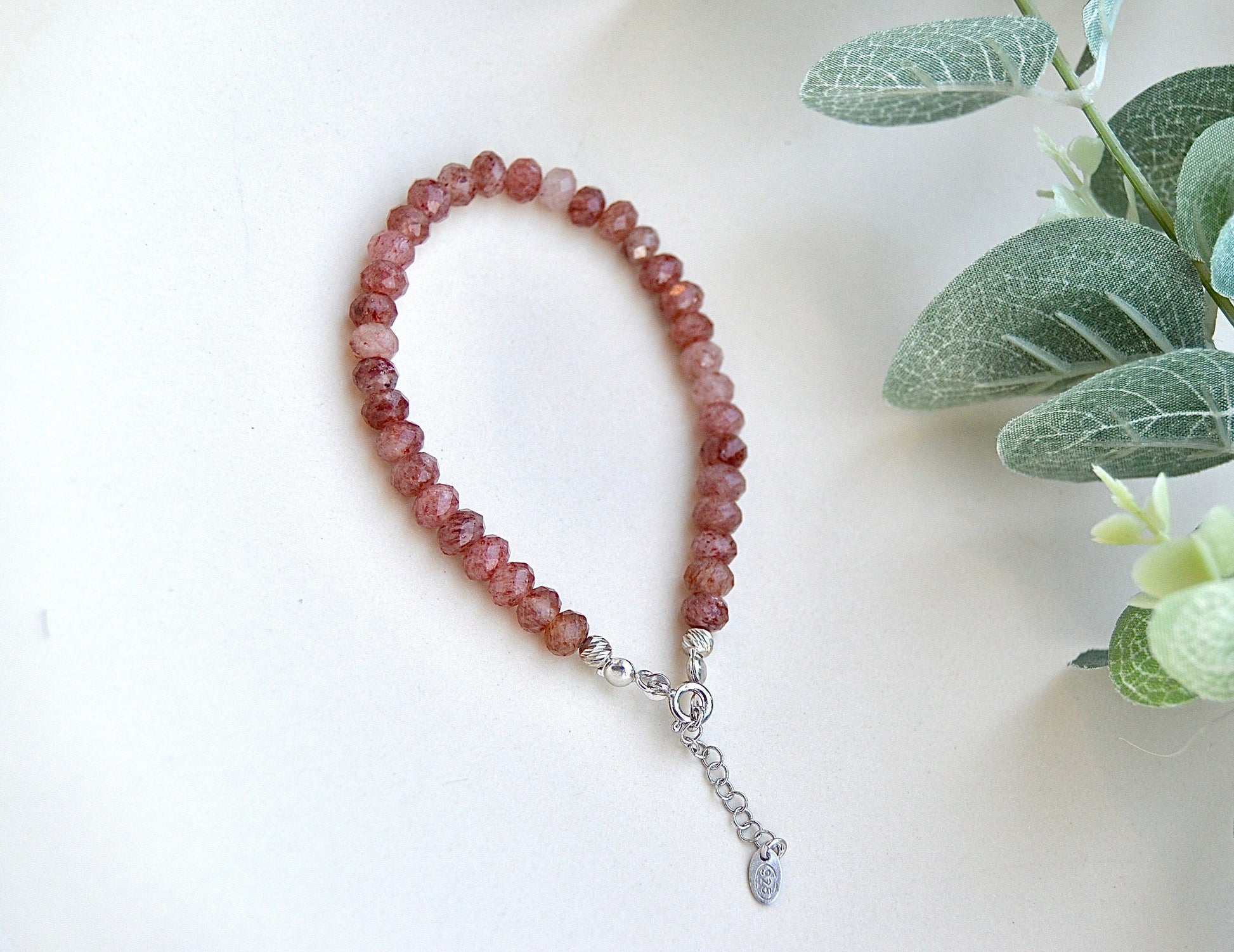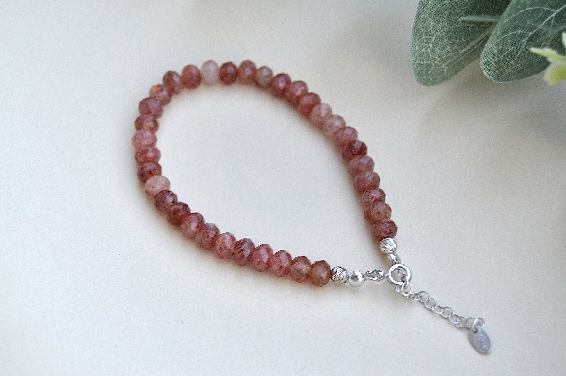 Jordbærkvarts armbånd med sølvdetaljer – kjærlighet, glede og indre ro