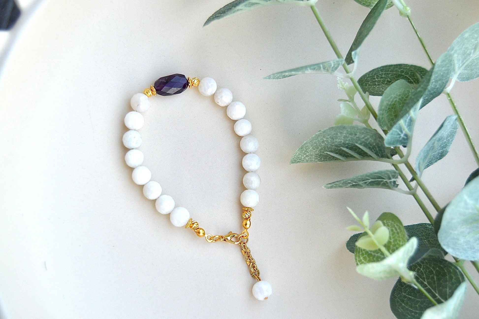 Månestein og ametyst armbånd – ro, intuisjon og spirituell balanse