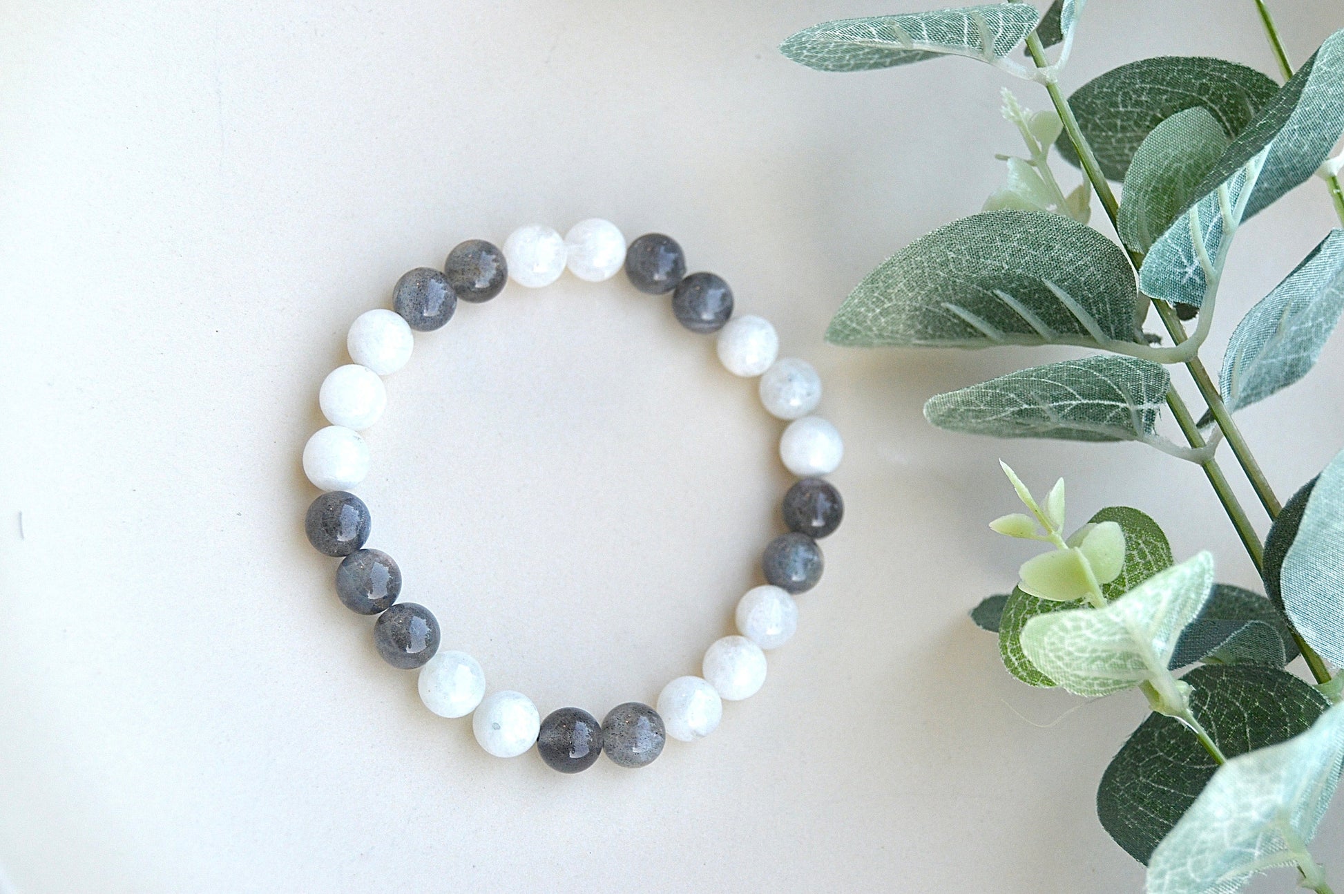 Et kraftfullt og harmonisk armbånd satt sammen av to mystiske og intuitive steiner – månestein og labradoritt. Dette smykket er ideelt for deg som ønsker å styrke din indre veiledning, skjerme deg mot negativ energi og balansere følelser.