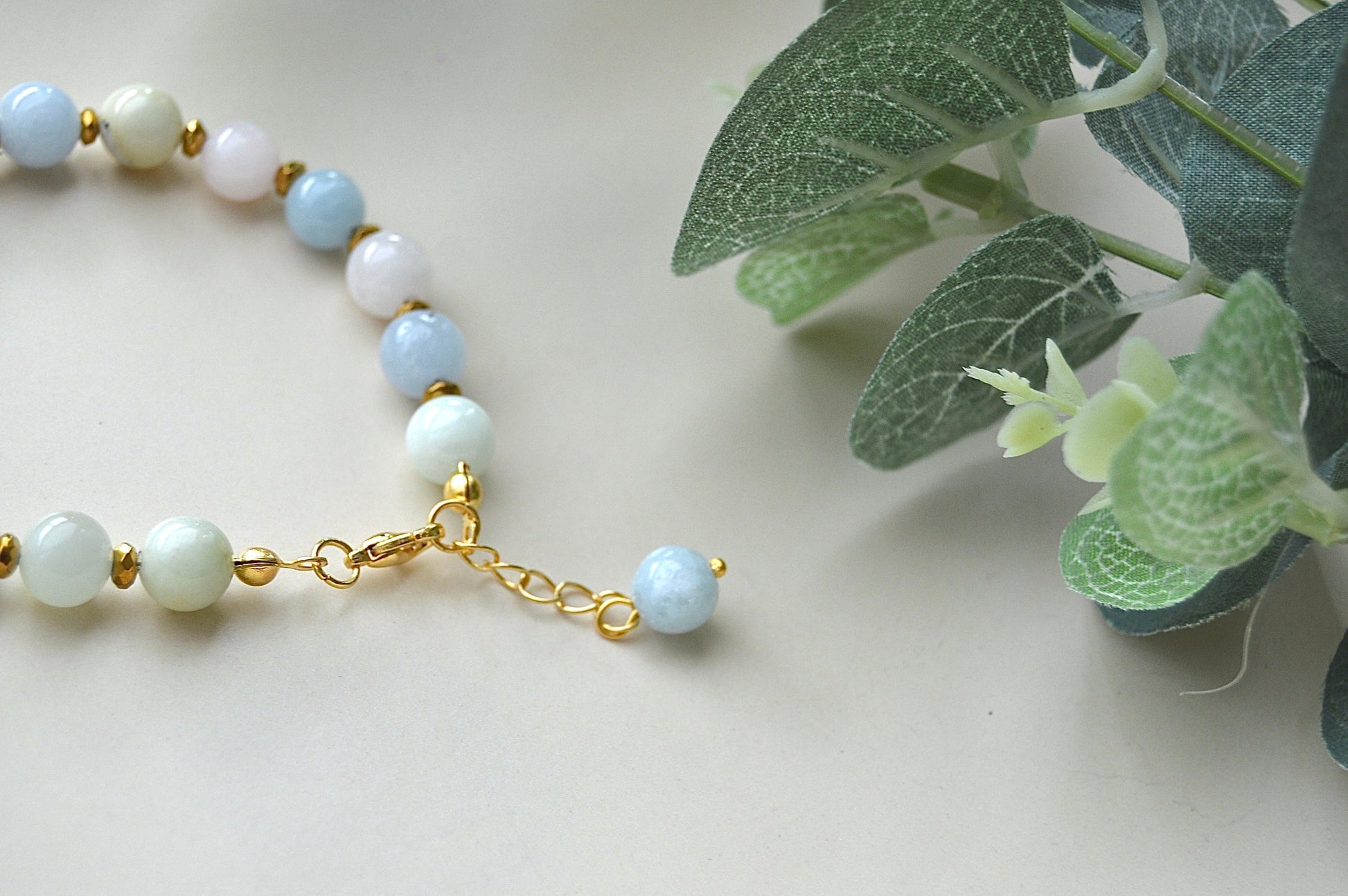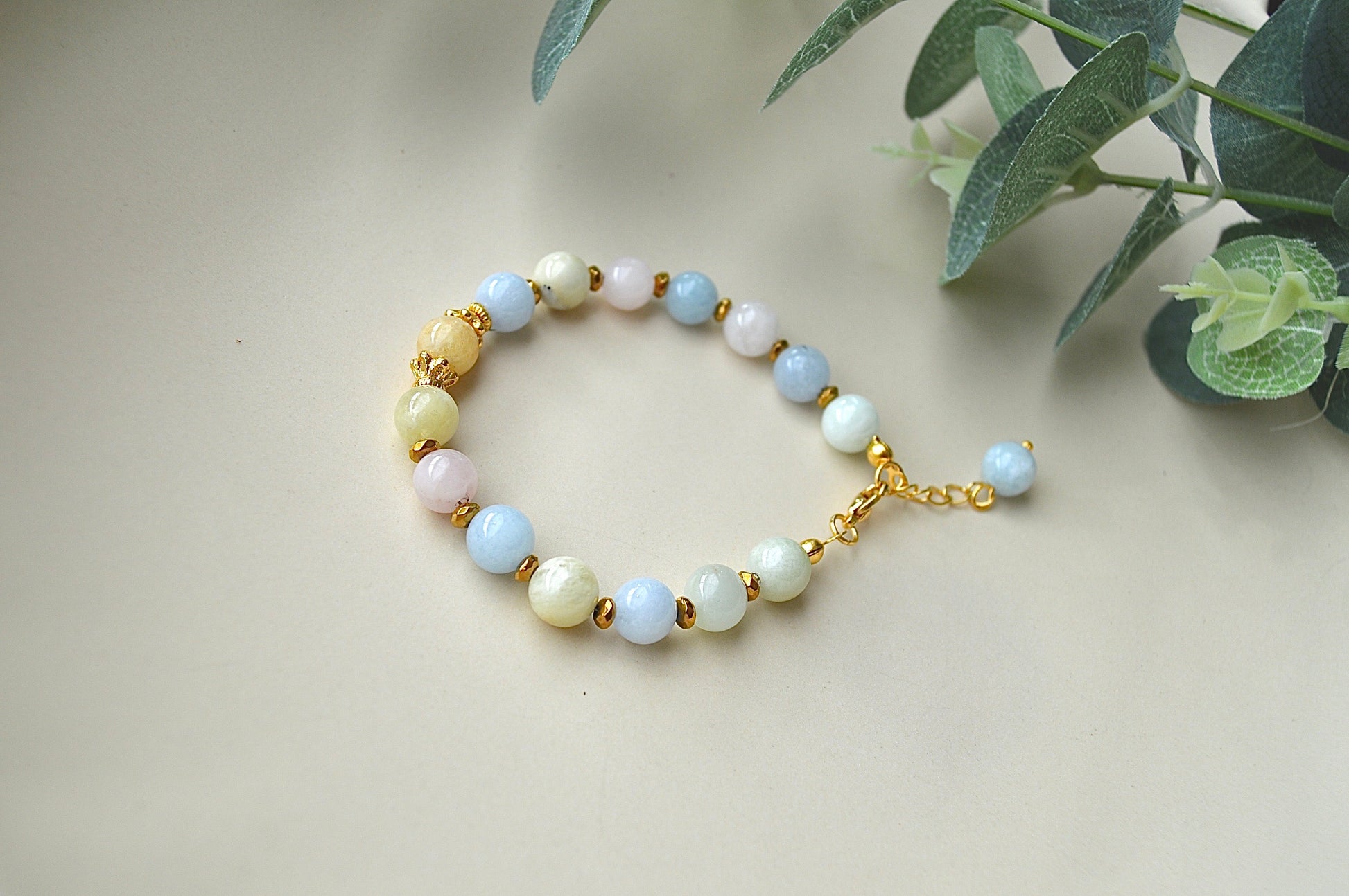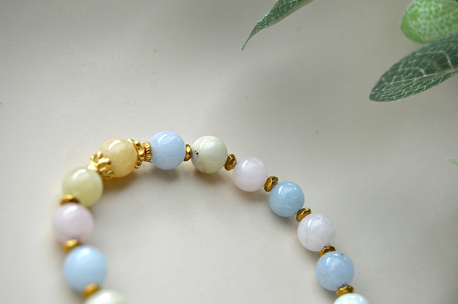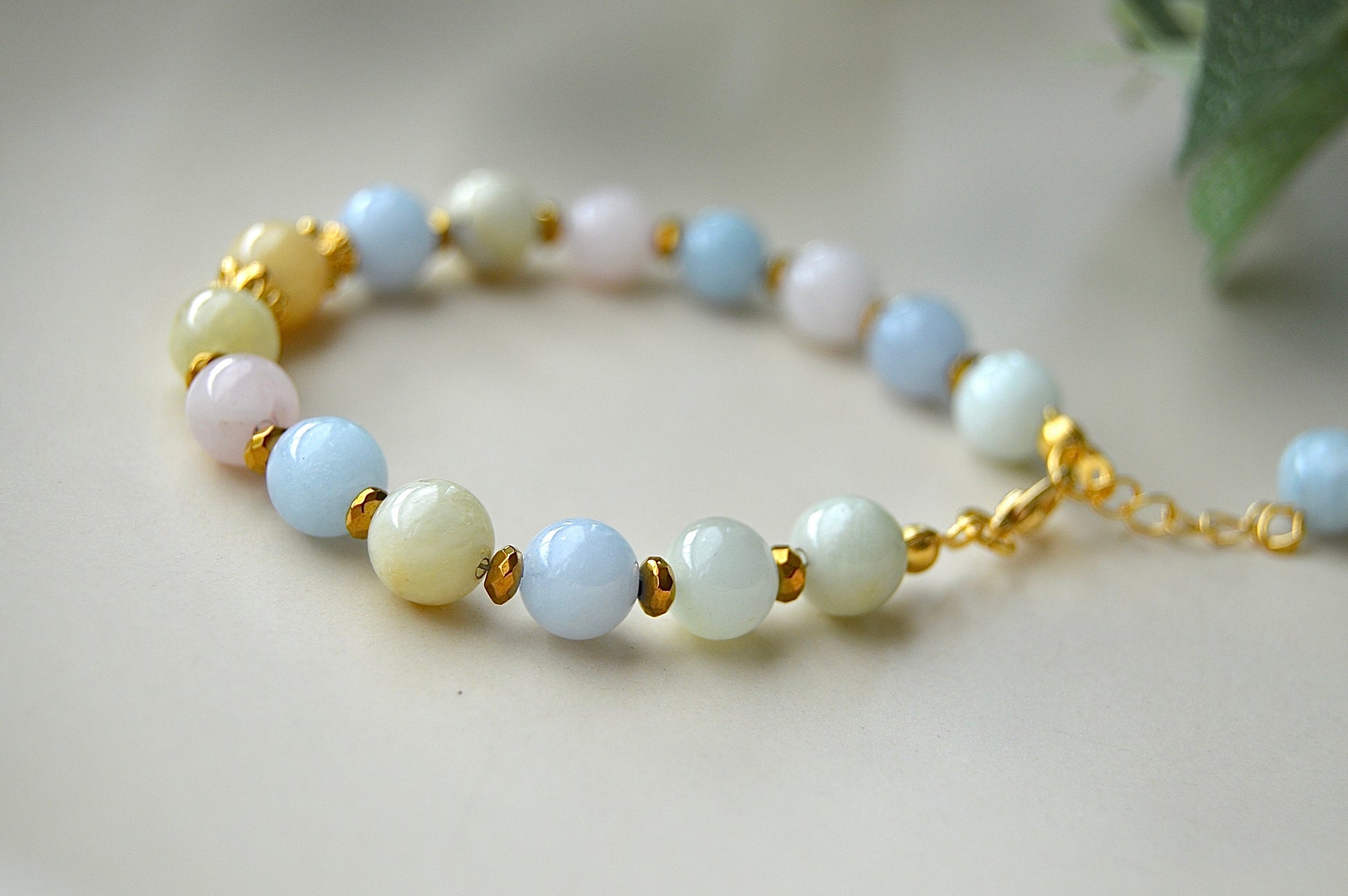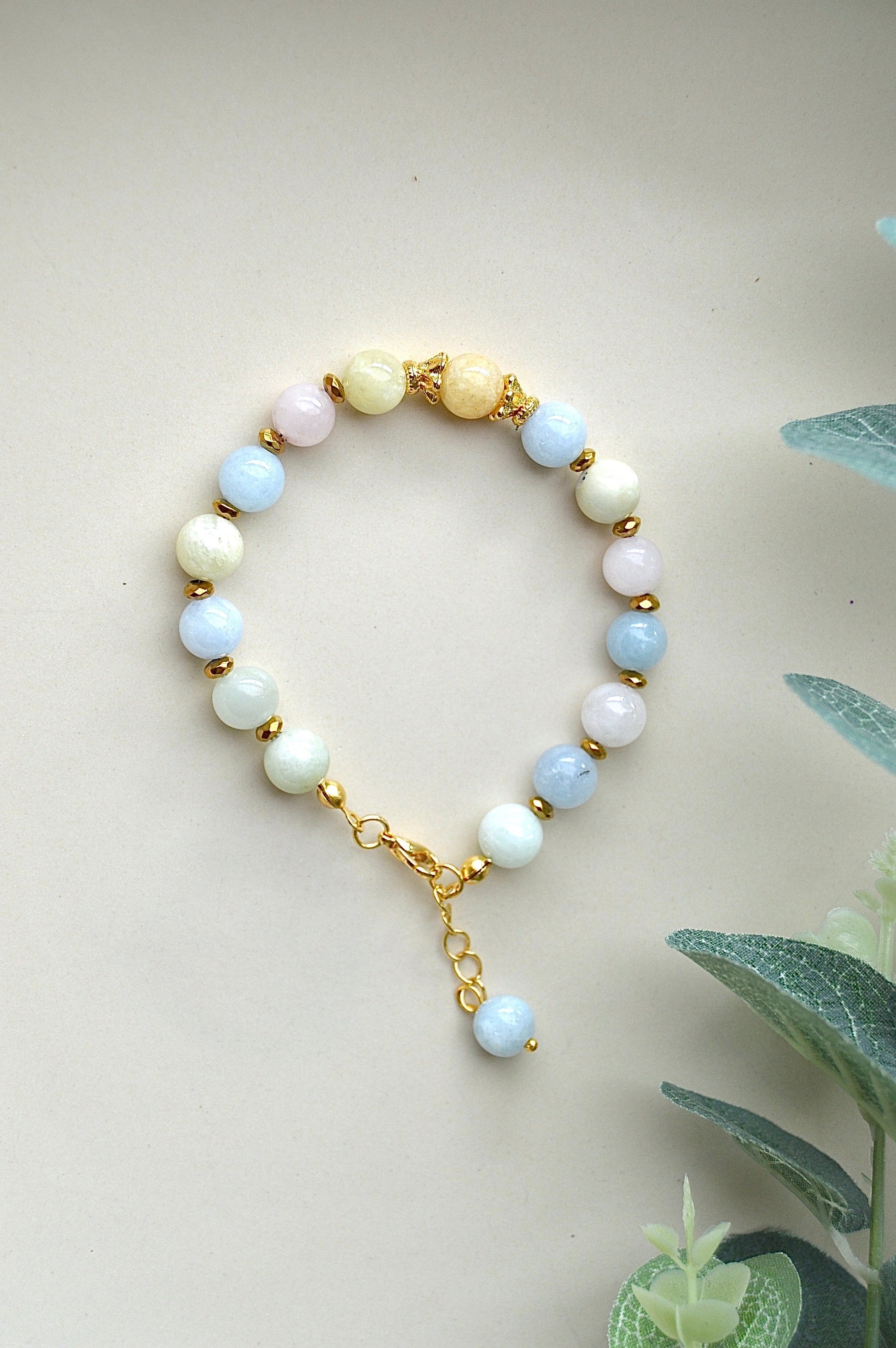 Morganitt armbånd med gullbelagte detaljer – kjærlighet, balanse og indre fred