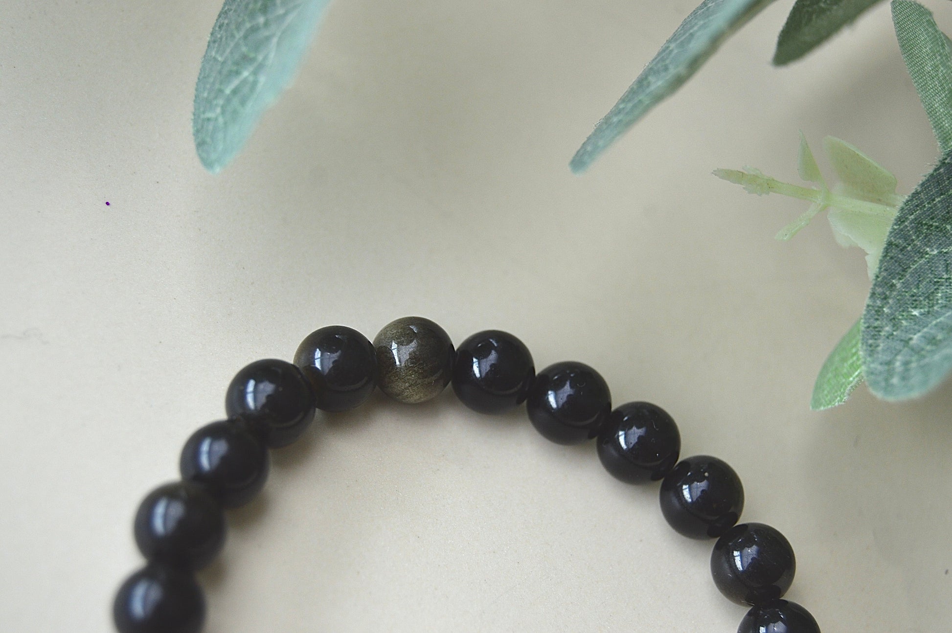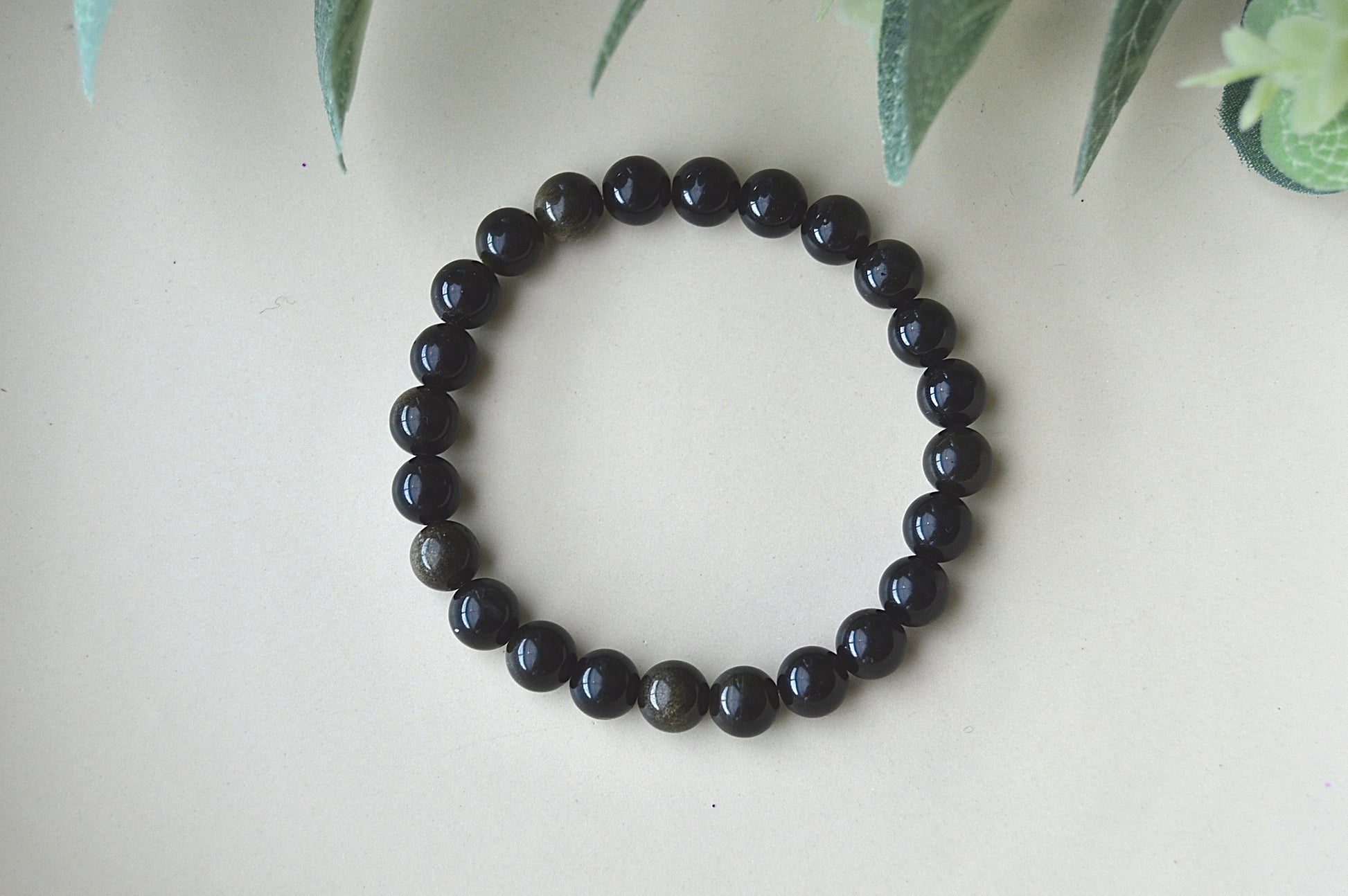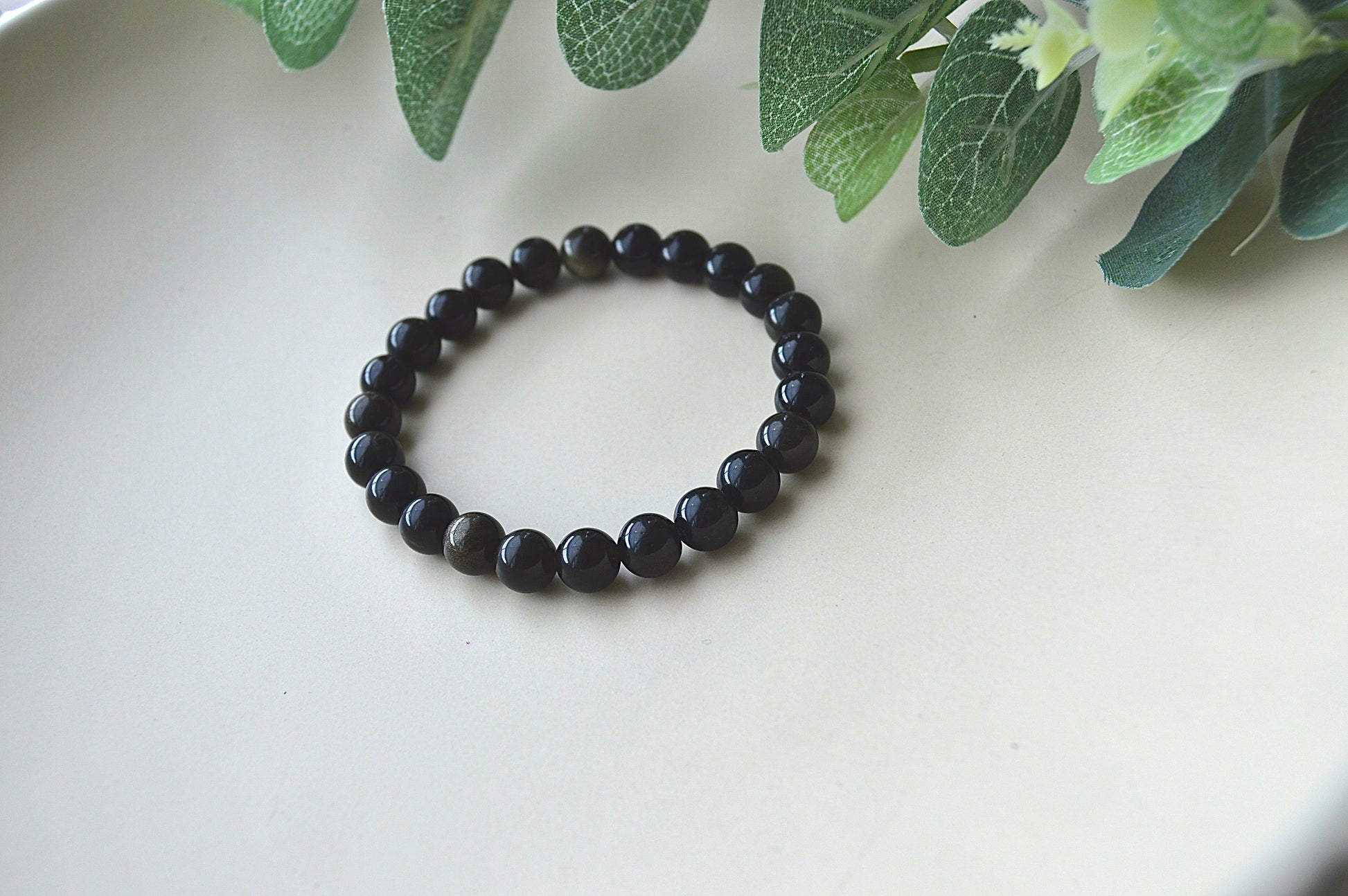 Et vakkert armbånd laget av ekte obsidianperler (ca. 8 mm) med en klassisk svart glans som gir et elegant og tidløst uttrykk.